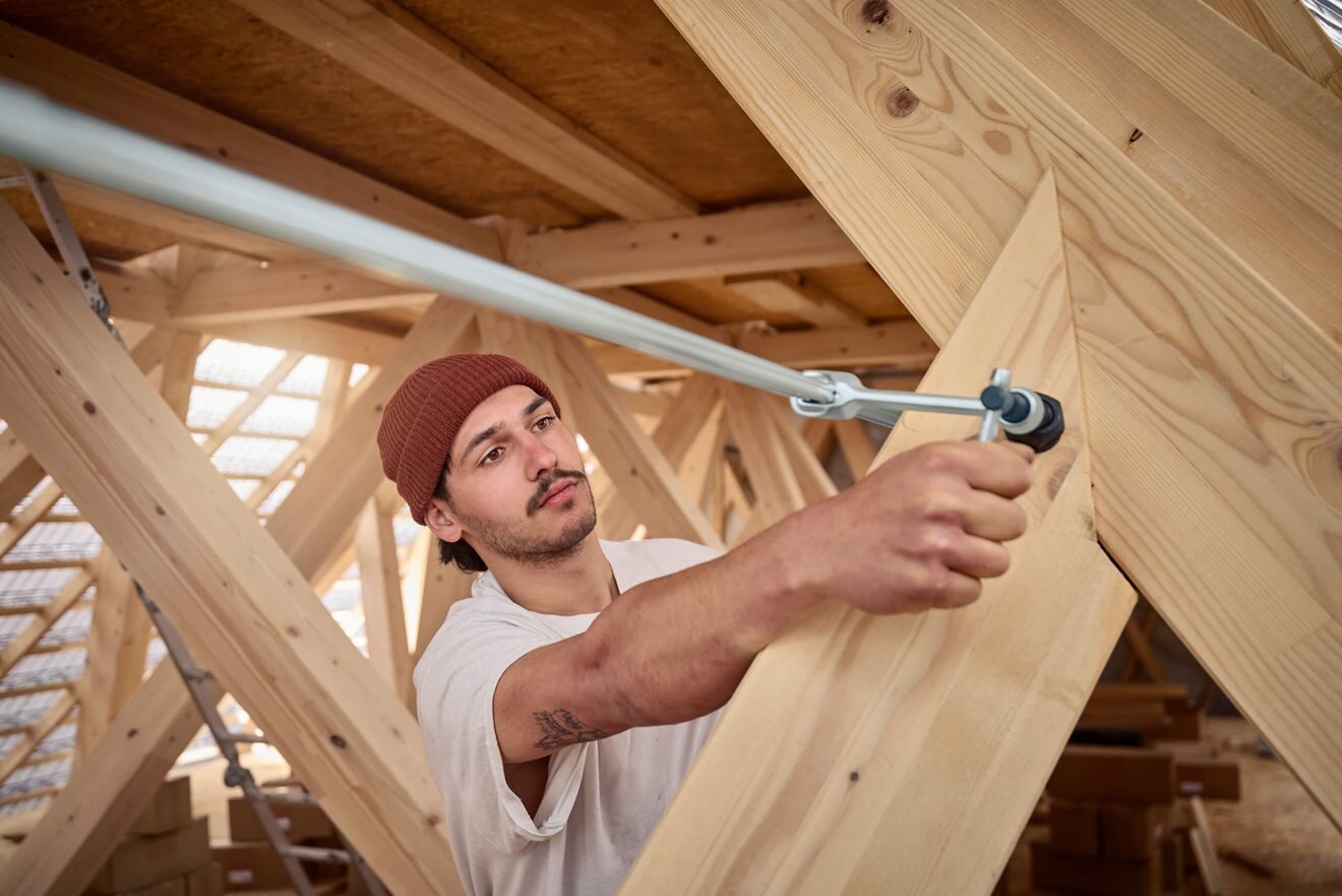 Unsere kraftvollen Deckenstützen, flexiblen Einhandzwingen und innovativen Sparrenzwingen sind speziell für den harten Einsatz im Zimmereralltag entwickelt. Sie überzeugen durch starke Haltekraft bei geringem Kraftaufwand und erleichtern Ihnen so jeden Arbeitsschritt.